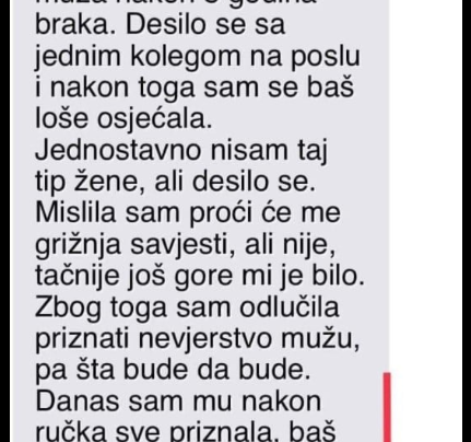 Jučer sam prevarila muža nakon 8 godina braka. Desilo se sa jednim kolegom na poslu i nakon toga sam se…