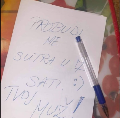 Mladi bračni par ne priča već tri dana. Četvrti dan žena nađe na stolu papir na kojem piše: ‘Probudi me…