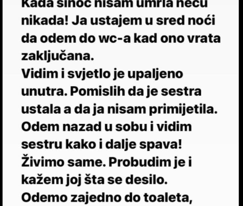 “Kada sinoć nisam umrla neću nikada! Ja ustajem u sred noći da odem do wc-a kad ono vrata zaključana. Vidim…