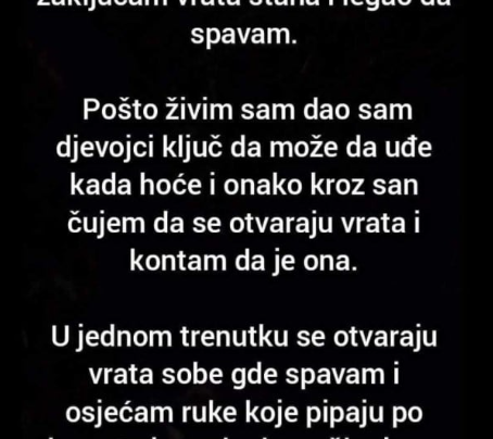 “Jedne noći sam zaboravio da zaključam vrata stana i legao da spavam. Pošto živim sam dao sam djevojci ključ da…