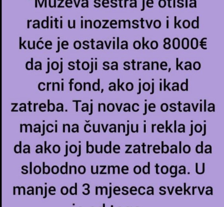 Muževa sestra je otišla raditi u inozemstvo i kod kuće je ostavila oko 8000€ da joj stoji sa strane, kao…