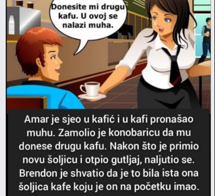 Amar je sjeo u kafić i u kafi pronašao muhu. Zamolio je konobaricu da mu donese drugu kafu. Nakon što…