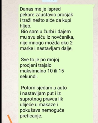 “Danas me je ispred pekare zaustavio prosjak”