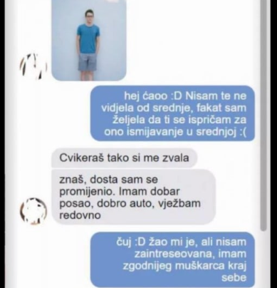 JAVIO SAM SE DJEVOJCI KOJA ME ISMIJAVALA U SREDNJOJ, zvala me CVIKERAŠ: Poslao sam joj svoju sliku nakon 10 godina i ŠOKIRALA SE, MOLI DA IZAĐEMO