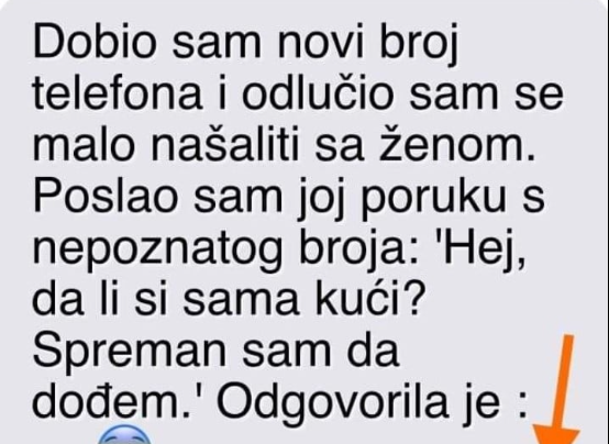 Dobio sam novi broj telefona i odlučio sam se malo našaliti sa ženom. Poslao sam joj poruku s nepoznatog broja:…