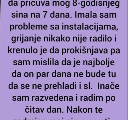 “Zamolila sam prijateljicu da pričuva mog 8-godišnjeg sina na 7 dana. Imala sam probleme sa instalacijama, grijanje nikako nije radilo…