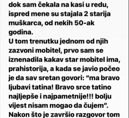 Danas sam bila u prodavnici i dok sam čekala na kasi u redu, ispred mene su stajala 2 starija muškarca,…