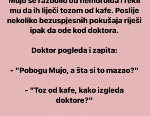Mujo se razbolio od hemoroida i rekli mu da ih liječi tozom od kafe. Poslije nekoliko bezuspjesnih pokušaja riješi ipak…