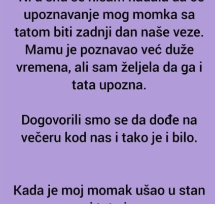 Ni u snu se nisam nadala da će upoznavanje mog momka sa tatom biti zadnji dan naše veze. Mamu je…