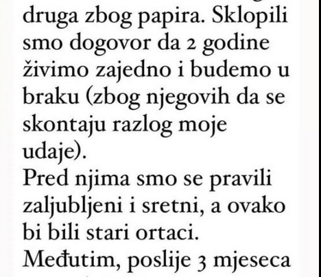 “Dogovorila sam se s drugom da se udam za njega”