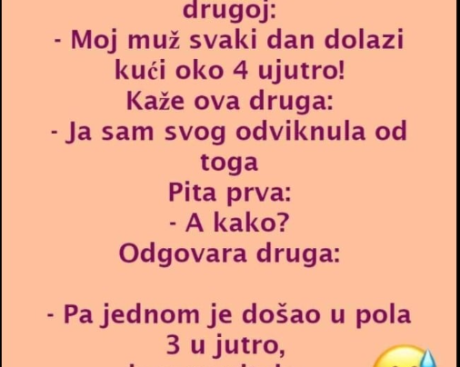 Donosimo vam jedan vic za dobro jutro: Žali se jedna prijateljica drugoj: Kaže ova druga: – Ja sam svog odviknula…