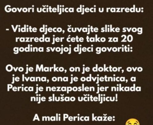 Govori učiteljica djeci u razredu: – Vidite djeco, čuvajte slike svog razreda jer ćete tako za 20 godina svojoj djeci…
