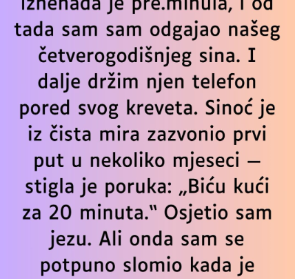 “Moja 27-godišnja žena iznenada je pre.minula, i od tada sam sam odgajao našeg četverogodišnjeg sina. I dalje držim njen telefon…